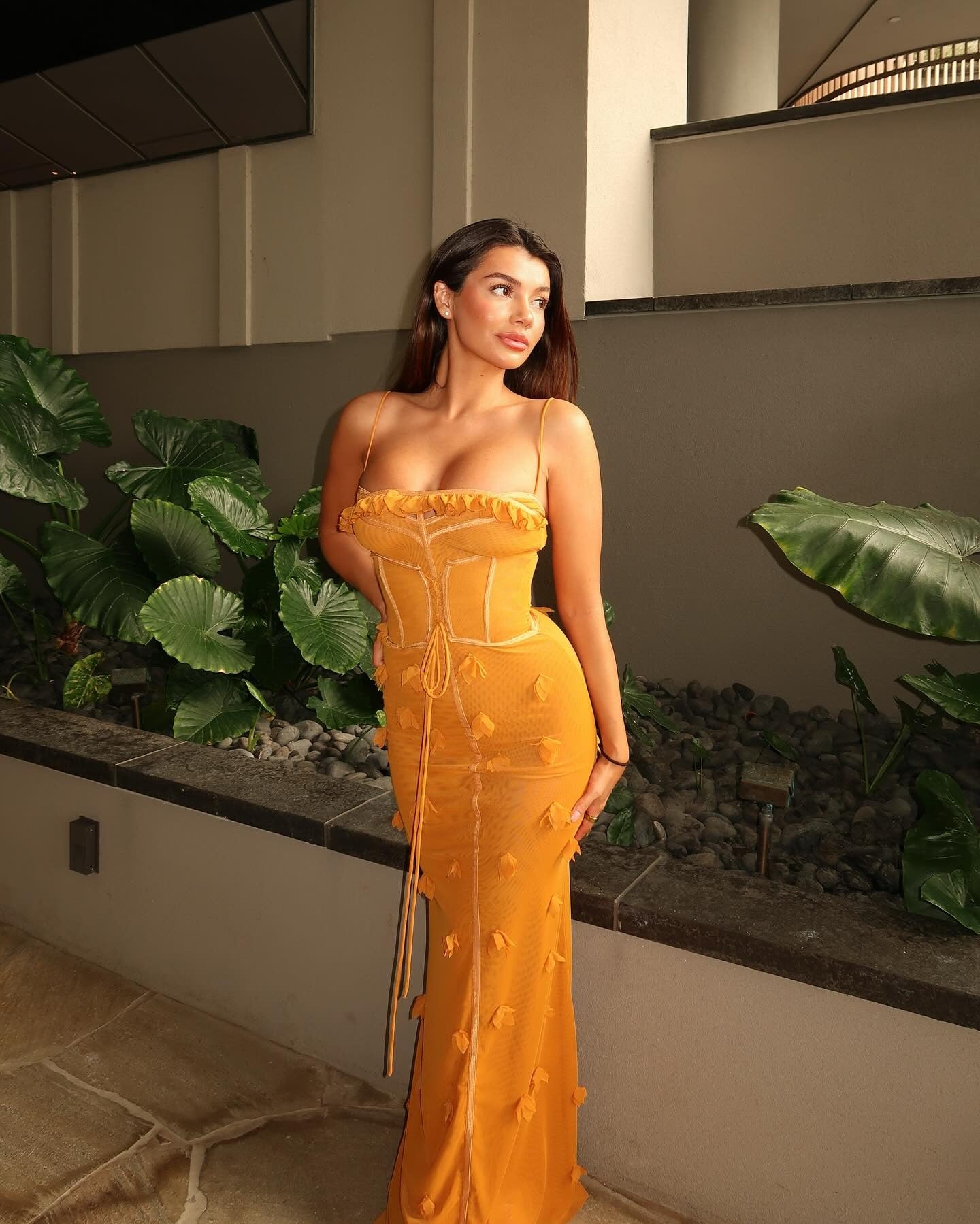 Inina Lace Corset One Shoulder Midi Dress - Brown