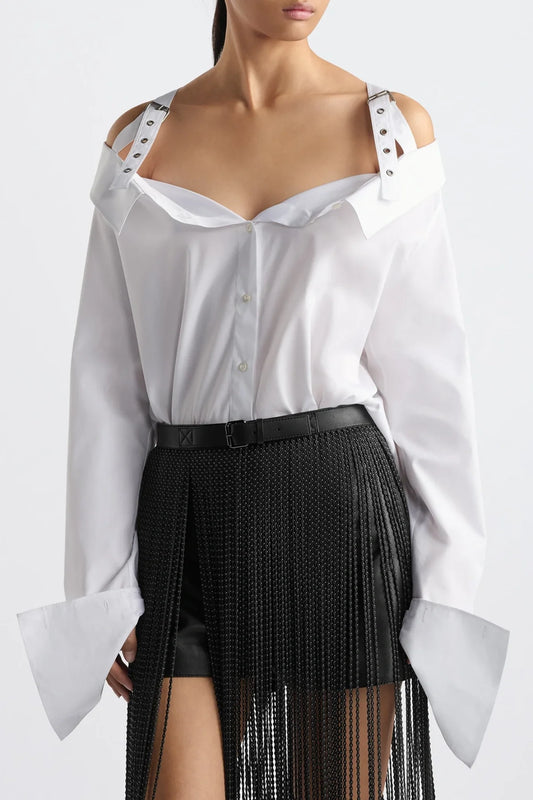 Chesley Asymmetrical Draped Flap Maxi Dress - White