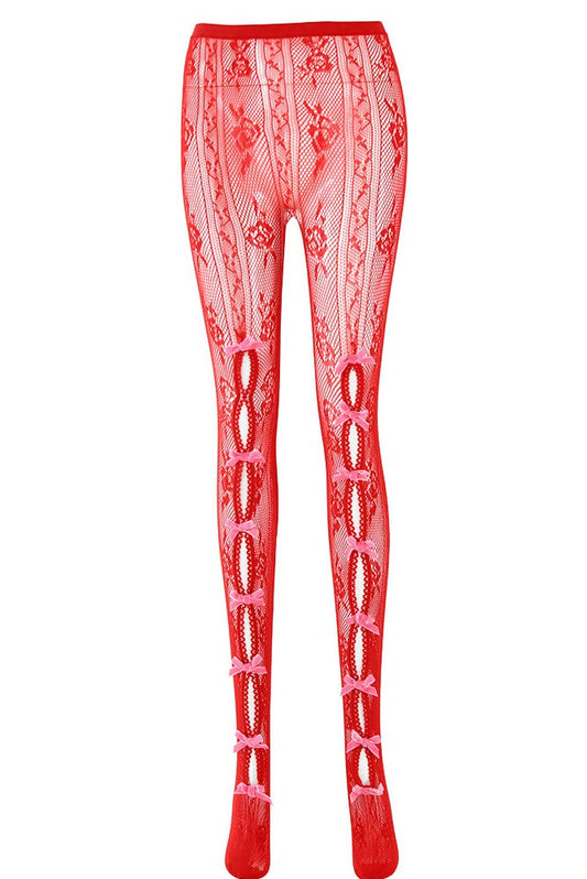 Yara Red Velvet Bow Rose Pink Lace Oversleeves
