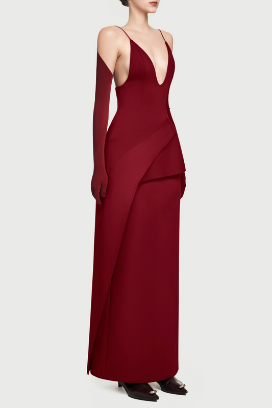 Chapera Asymmetrical Pleat Maxi Dress - Red