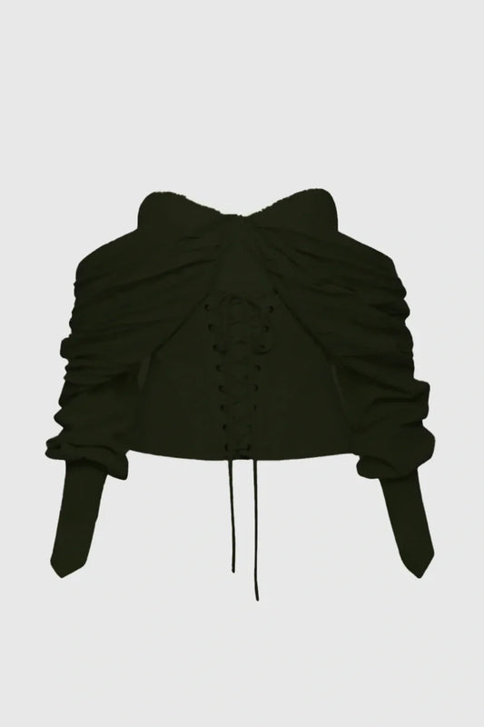 Andaia Off Shoulder Lace Up Corset Top-Black