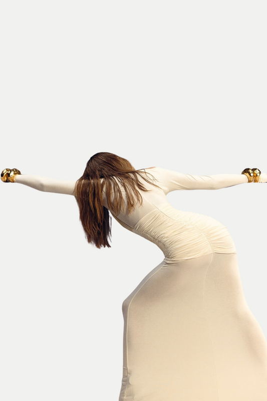 Jolleen Ruched Mesh Maxi Dress - Beige