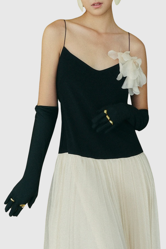 Janett One Shoulder Floral Embellished Mini Dress - Black