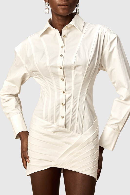 Kretska Cinched-waist Pleated Mini Shirt Dress - White