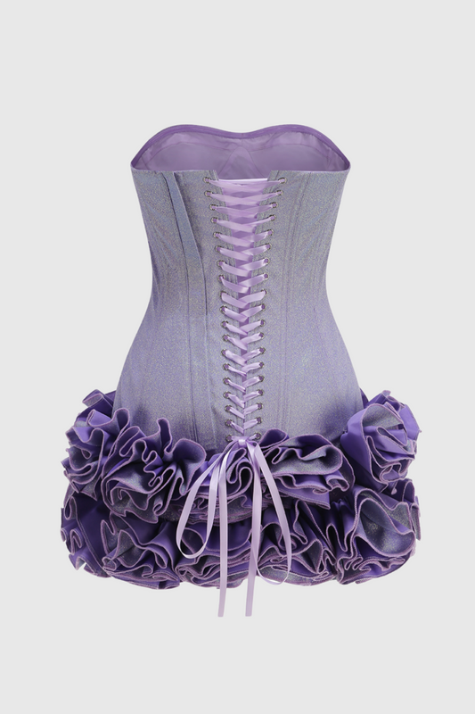 Nuala Glitter Strapless Floral Mini Dress - Purple