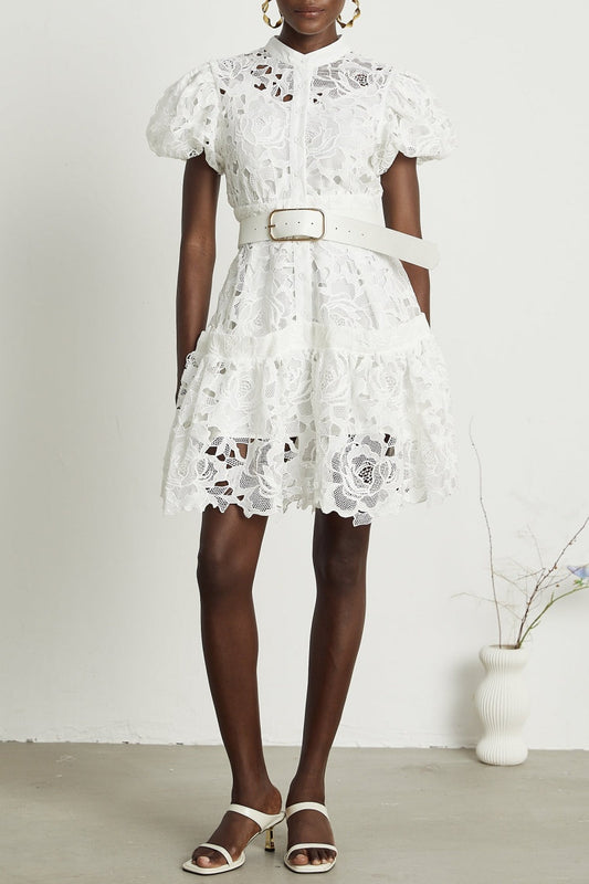 Freya Ruffle Lace-embroidered Belted Midi Dress - White