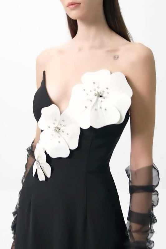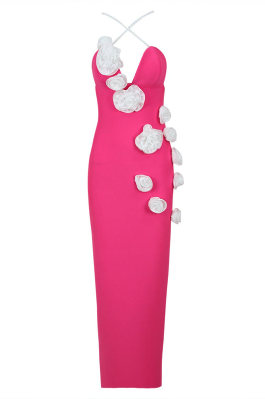 Malia Halter Mesh Flower Ruffle Midi Dress