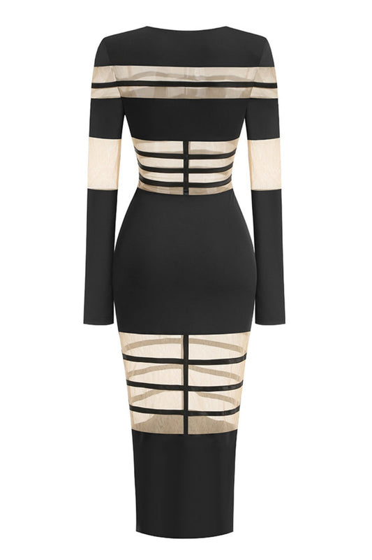 Londyn Mesh Long Sleeve Midi Dress - Black