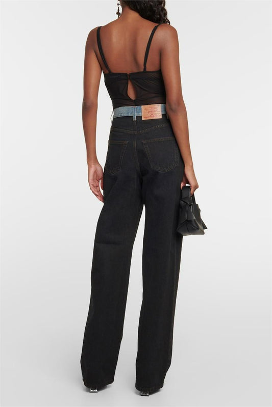 Emely Deconstructed Fake Two-piece Jeans - Black