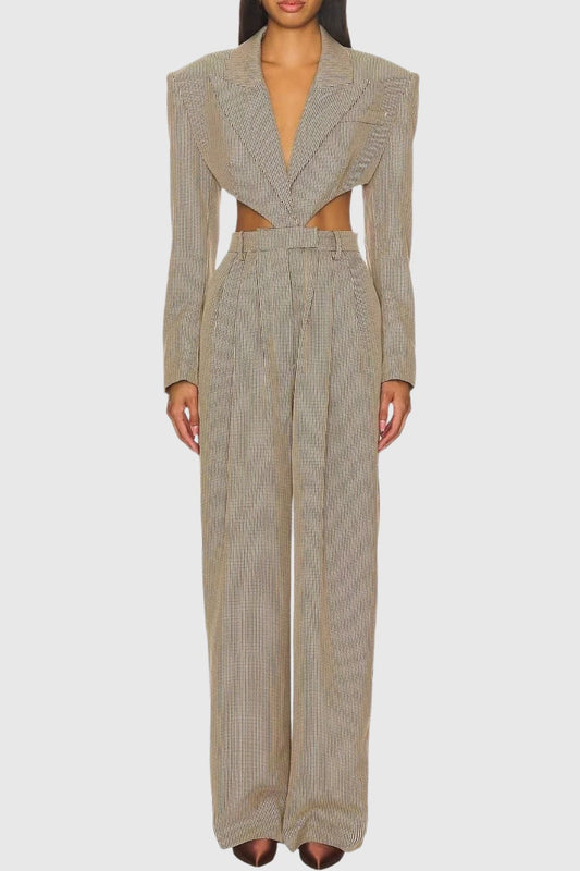 Cordia Houndstooth Belted Cutout Jumpsuit