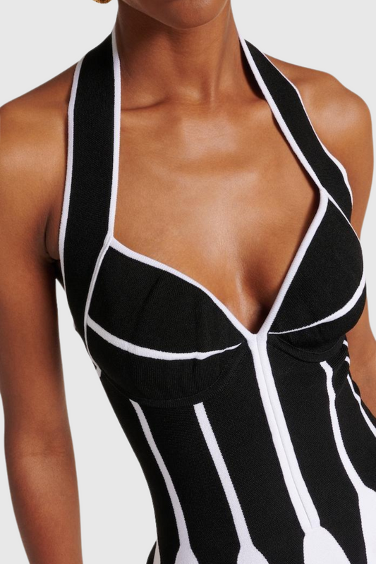 Abiga Diamond Jacquard Flared Knit Mini Dress