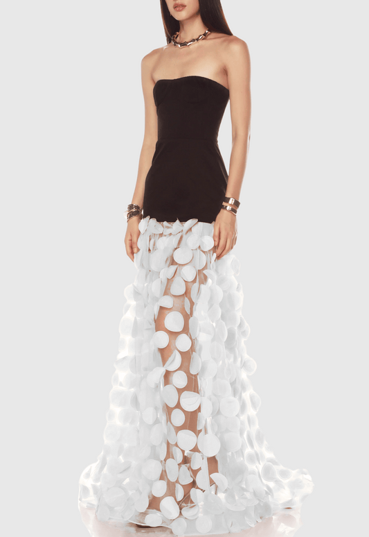 Nodin Strapless Dot Mesh Maxi Dress - Black