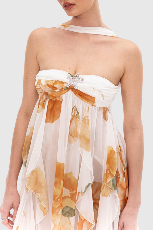 Kaidee Butterfly Strapless Puffy Mini Dress
