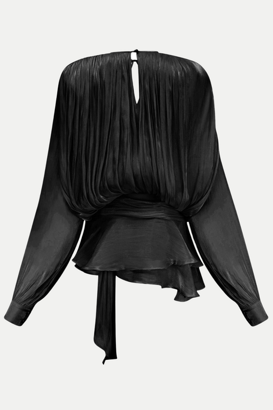 Anzay Pleated Ruffled Hem Mini Dress - Black
