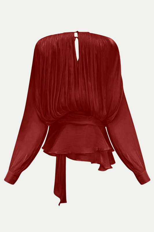 Anzay Pleated Ruffled Hem Mini Dress - Red