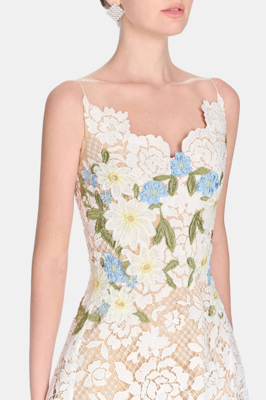 Mimoza Floral Appliqué Sleeveless Mini Dress - White