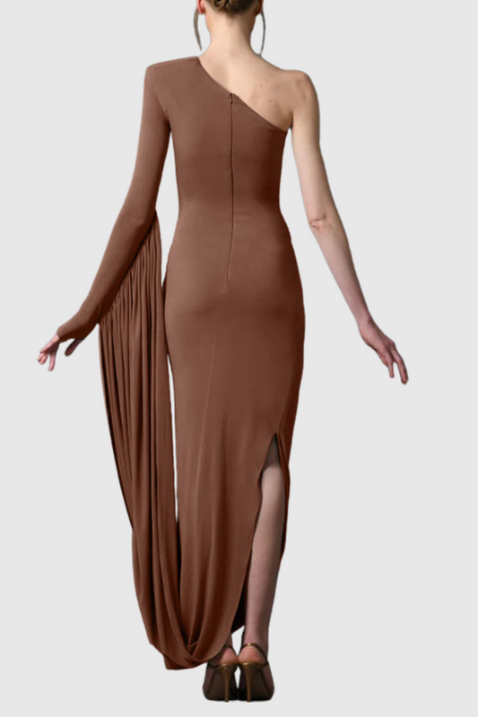 Aakifa Asymmetric Draped Maxi Dress - Blue
