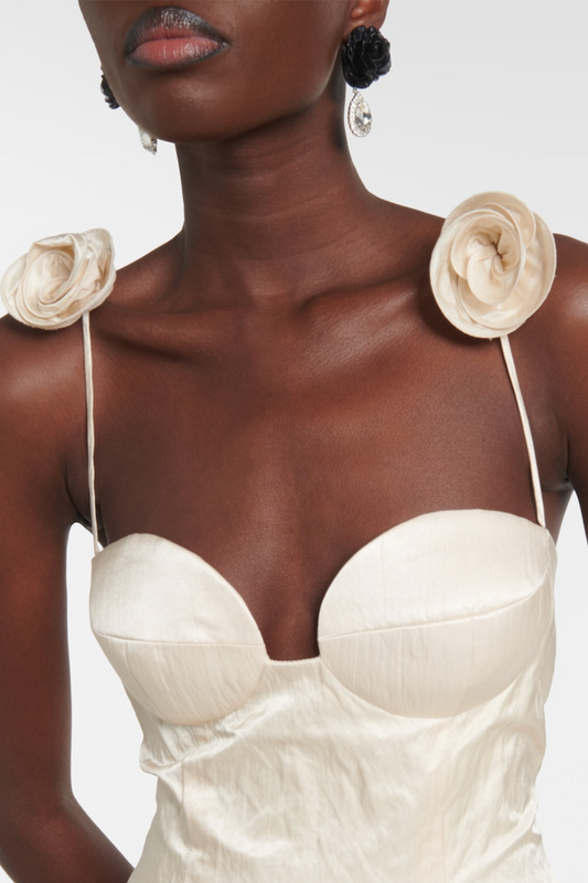 Durana Floral Appliqué Bustier Midi Dress - Beige