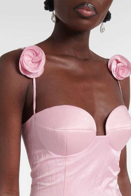 Durana Floral Appliqué Bustier Midi Dress - Pink