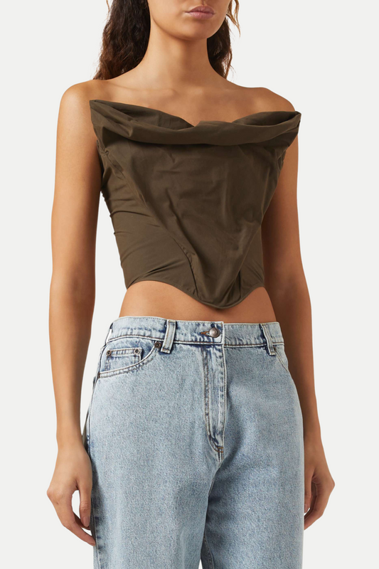 Inina Lace Corset One Shoulder Midi Dress - Brown