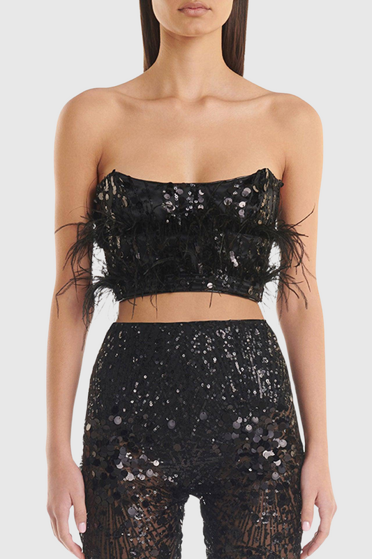Guthrie Mesh Corset Fringe Sequin Dress Two Piece Set