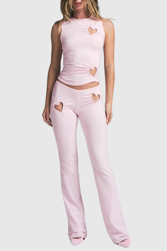 Cindia Floral Lace Up Corset Two Piece Set - Pink