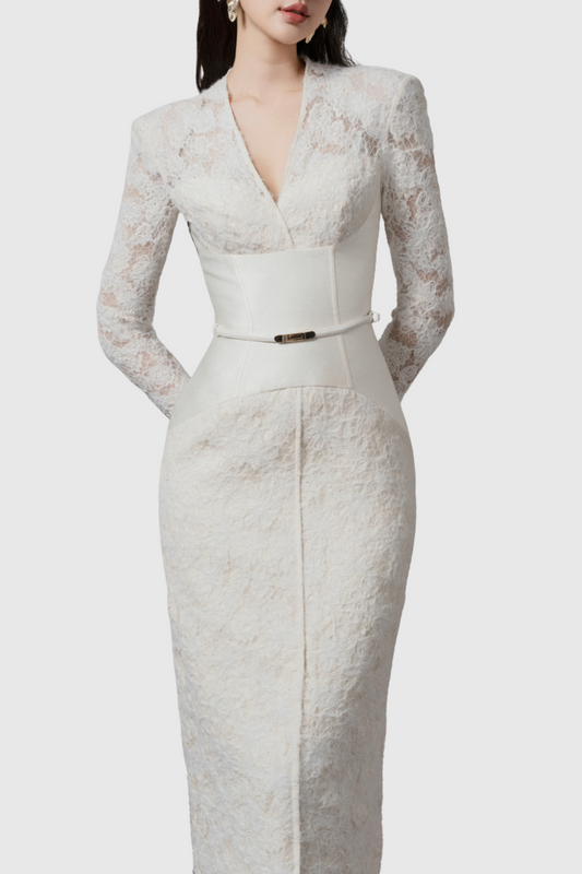 Inina Lace Corset One Shoulder Midi Dress - Beige