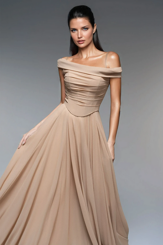 Inina Lace Corset One Shoulder Maxi Dress - Beige
