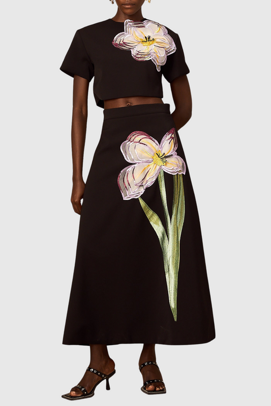 Nicola Floral Cutout Ruffle Skirt Two Piece Set