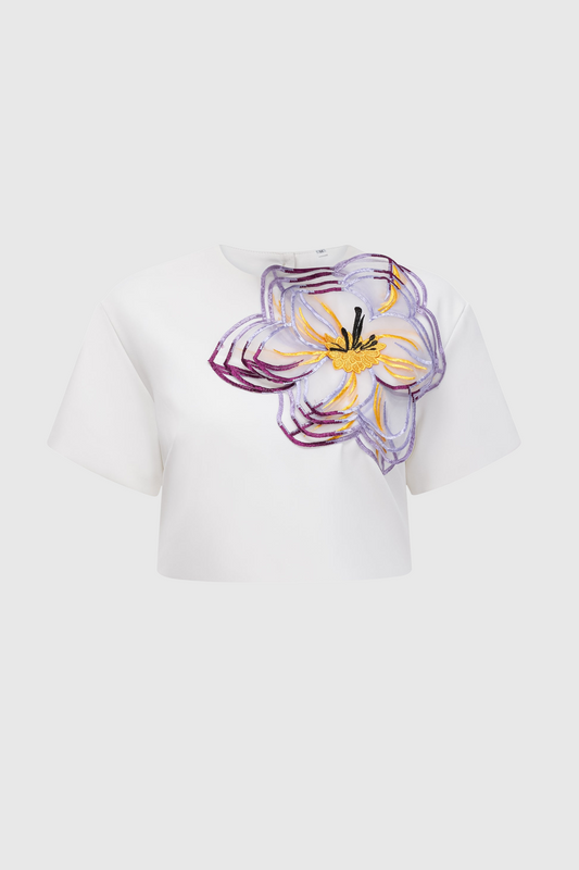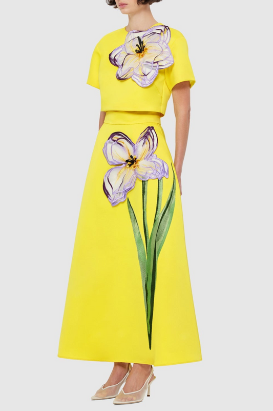 Mimoza Floral Appliqué Two Piece Set - Yellow