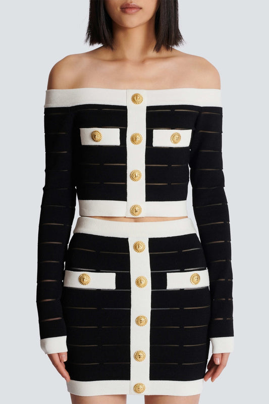 Olwa Asymmetrical Pearl Embellished Blazer & Skirt set