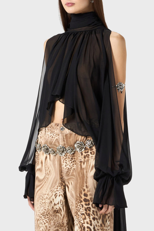 Mistee Asymmetric Slit-sleeve Blouse - Black