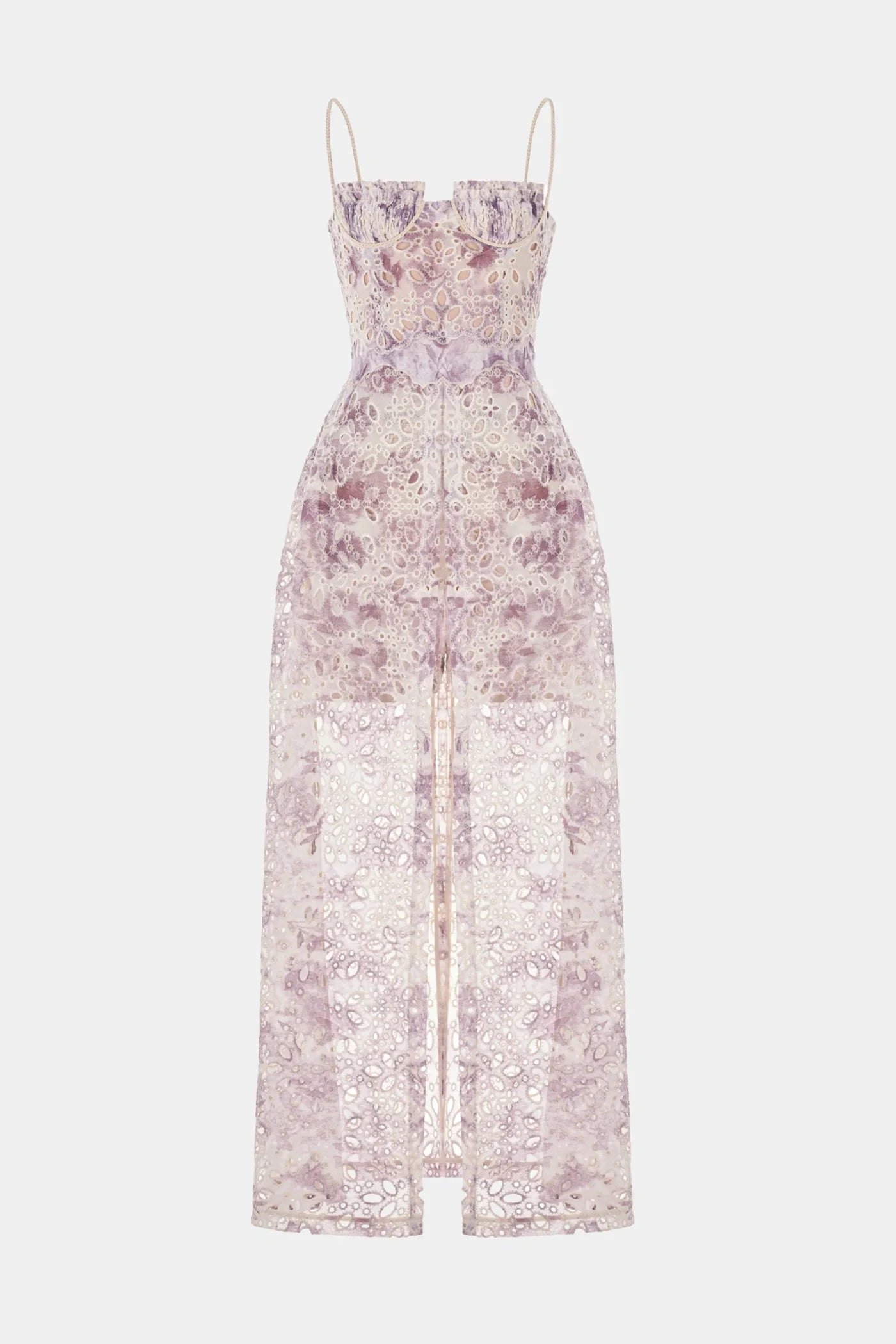 Abetzi Floral Embroidered Shorts & Maxi Dress Set - Purple
