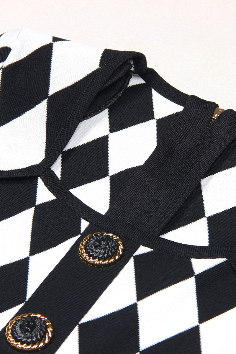Abiga Diamond Jacquard Flared Knit Mini Dress