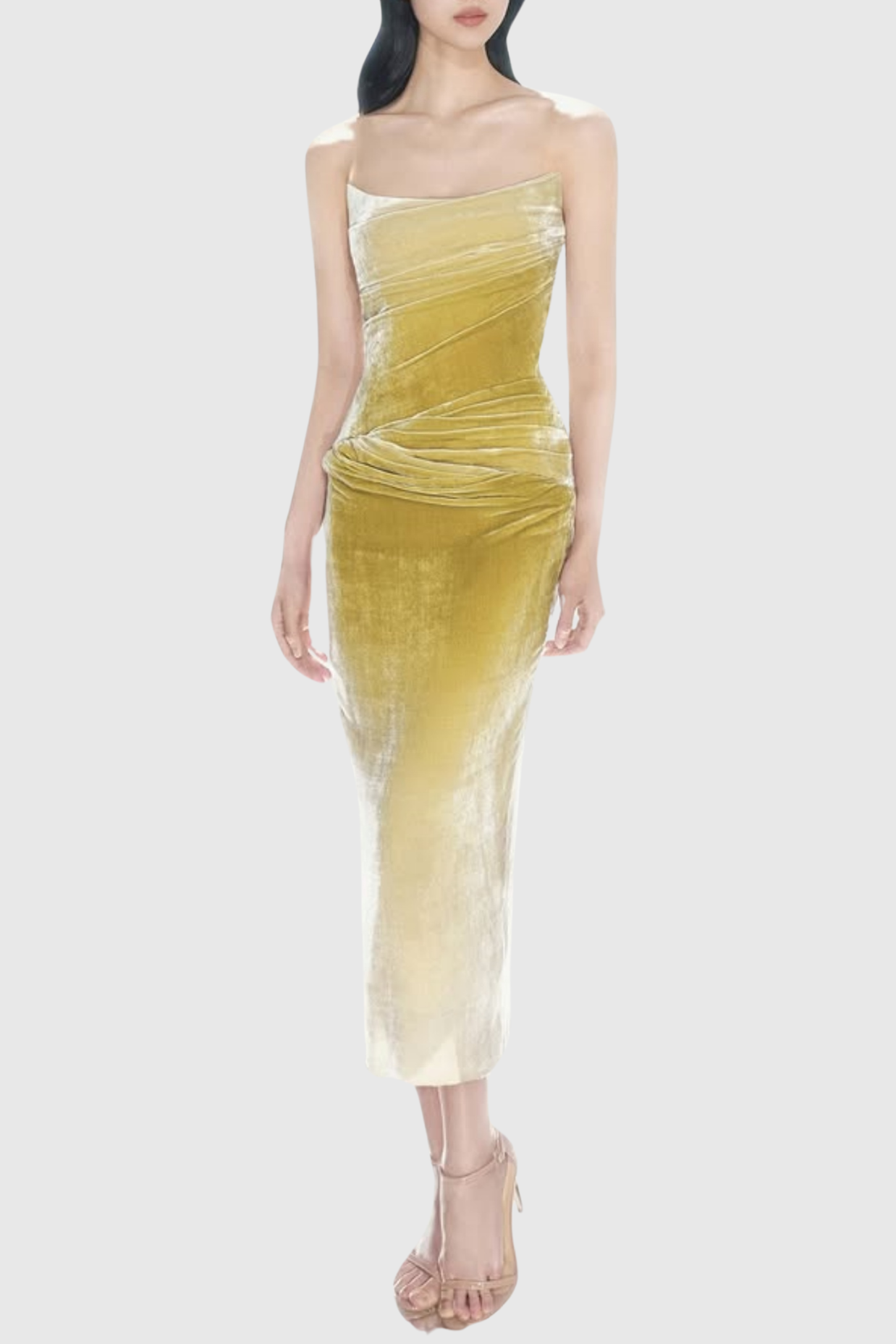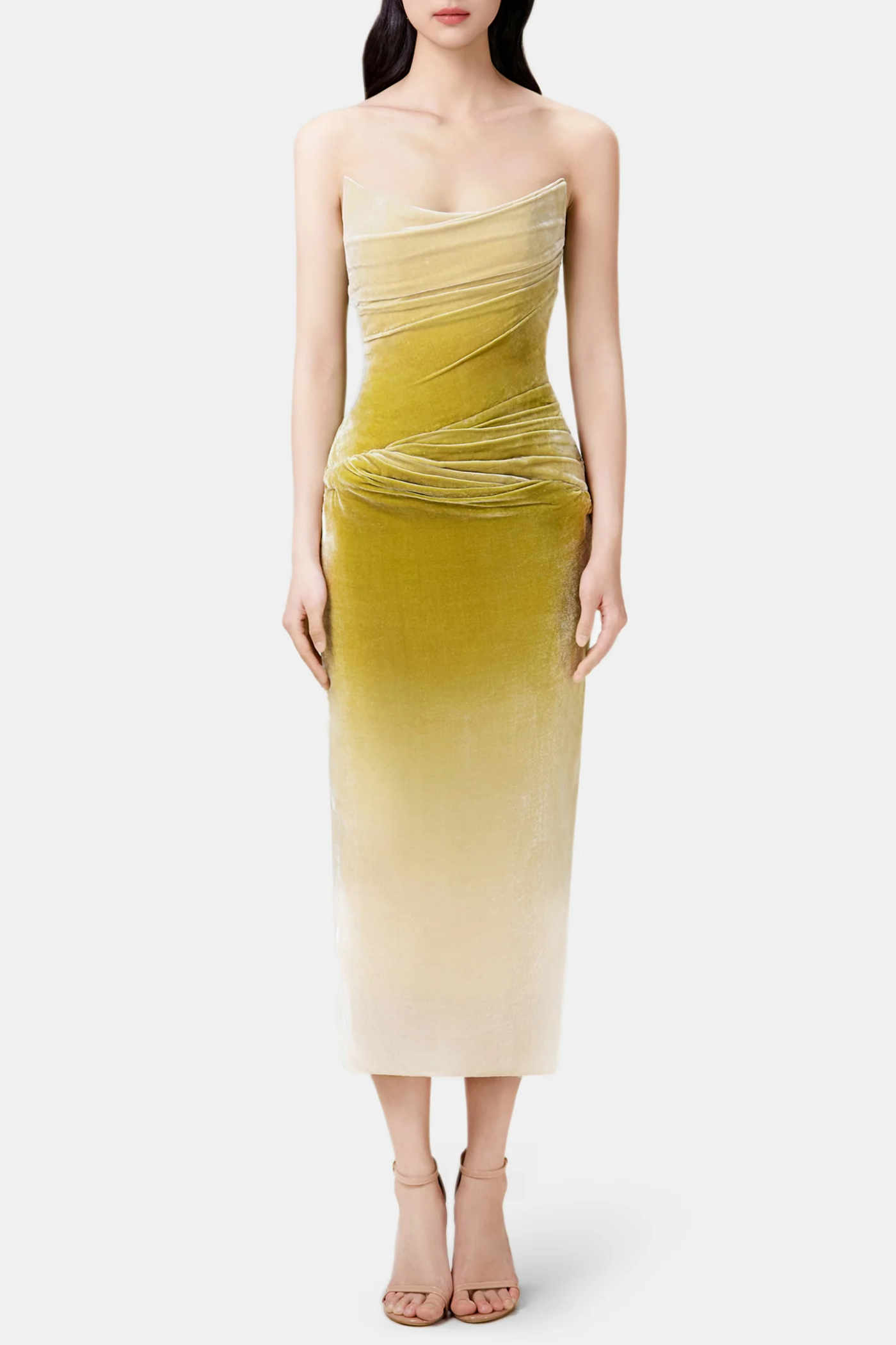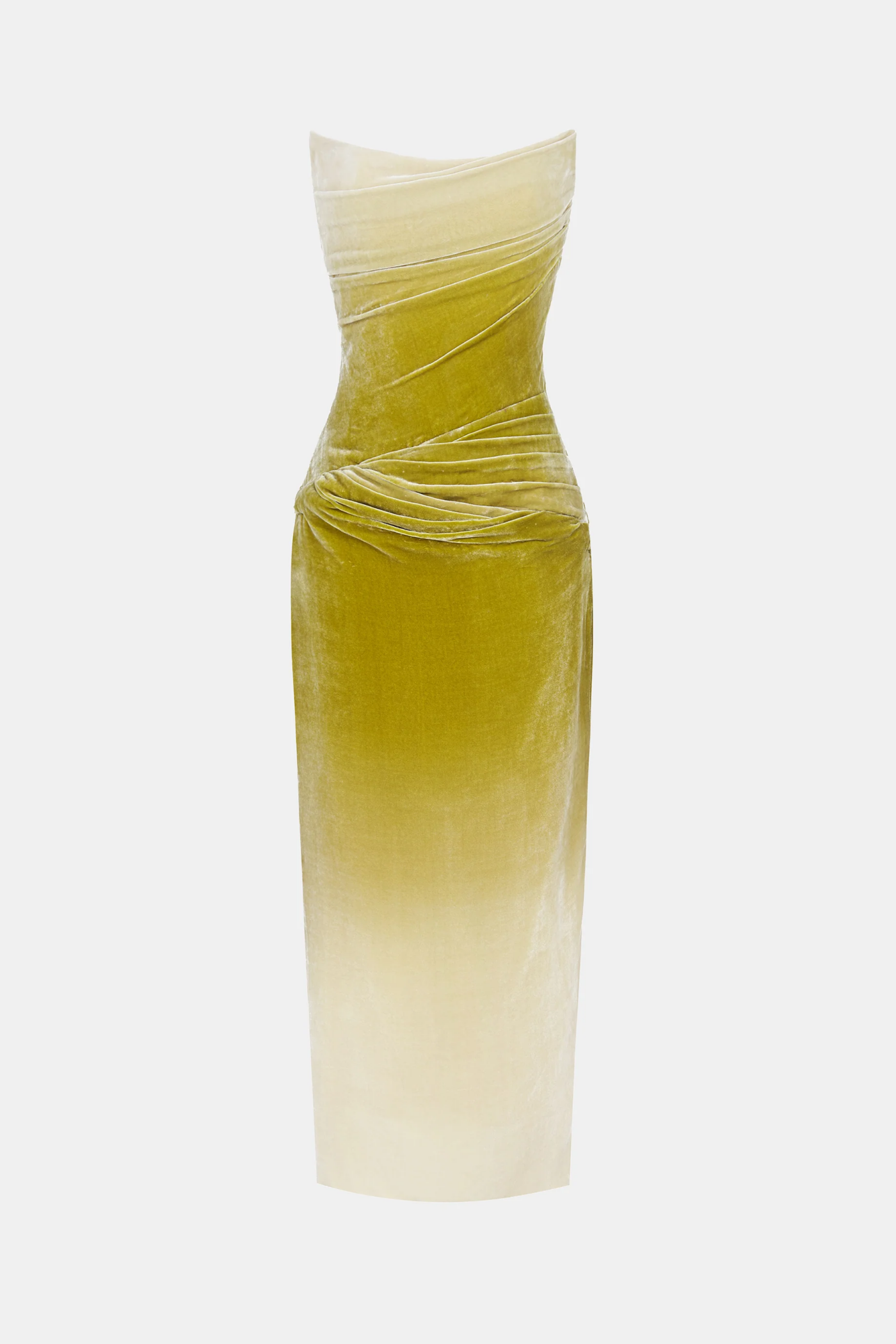 Achsa Velvet Strapless Gradient Ruched Midi Dress