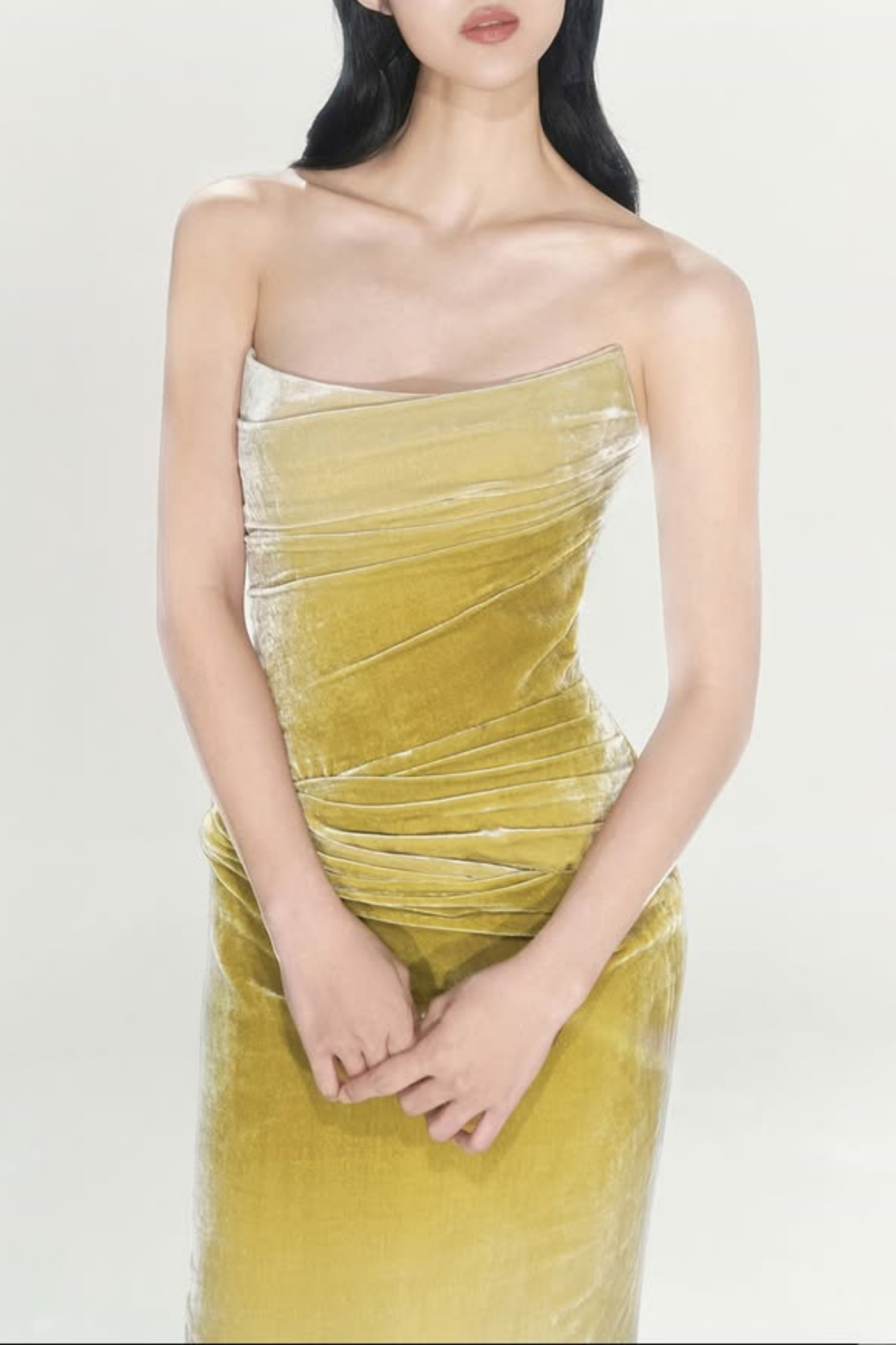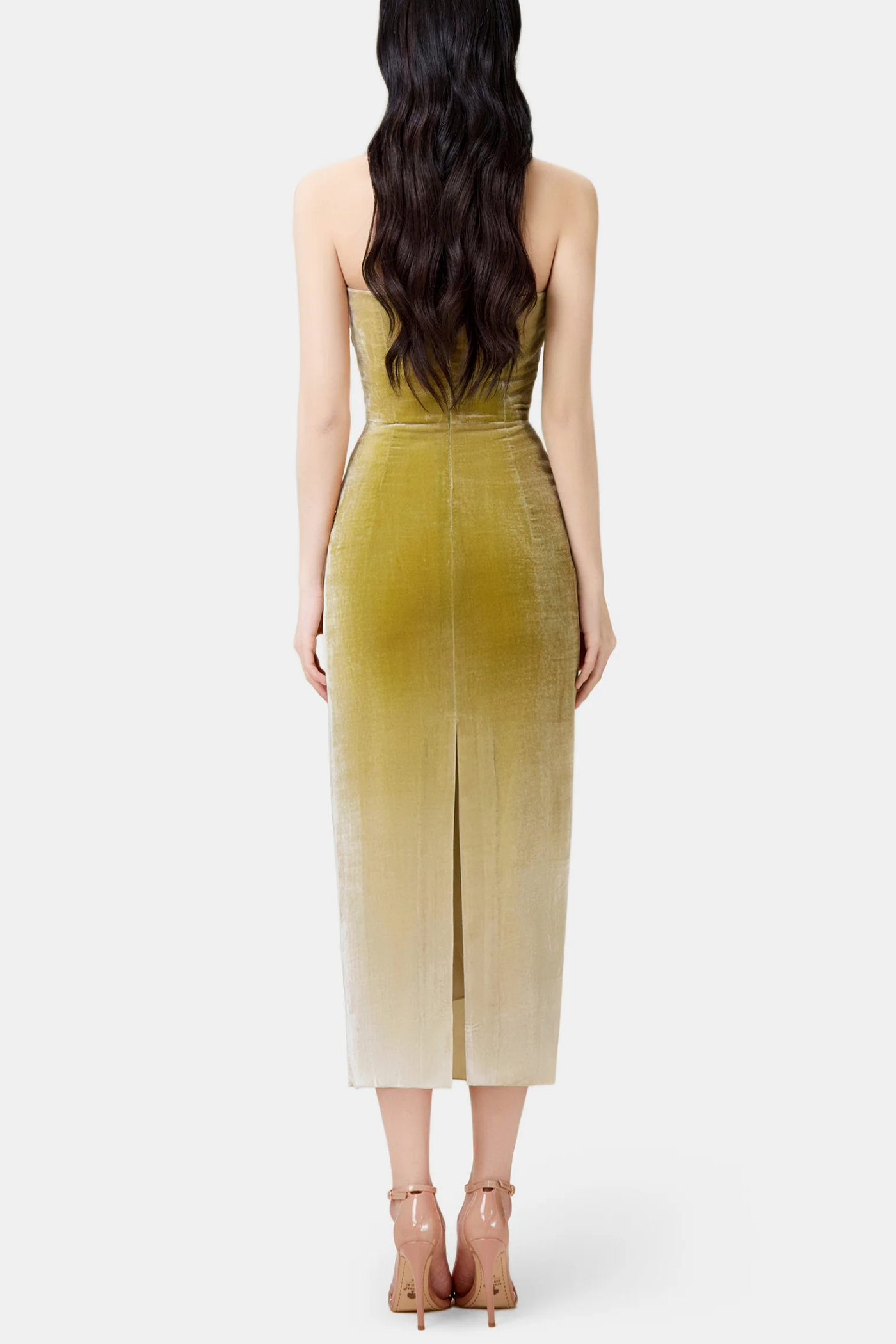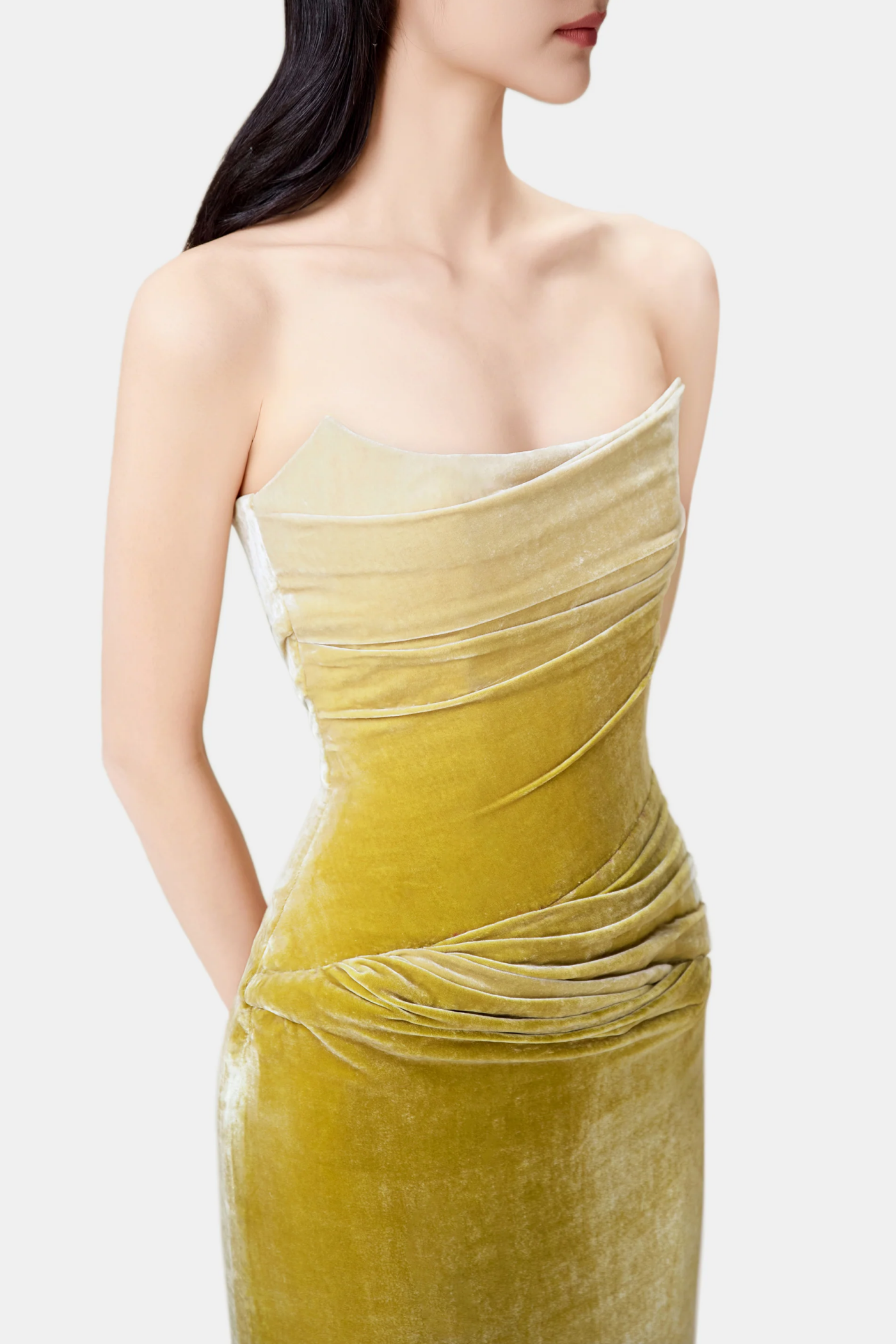 Achsa Velvet Strapless Gradient Ruched Midi Dress