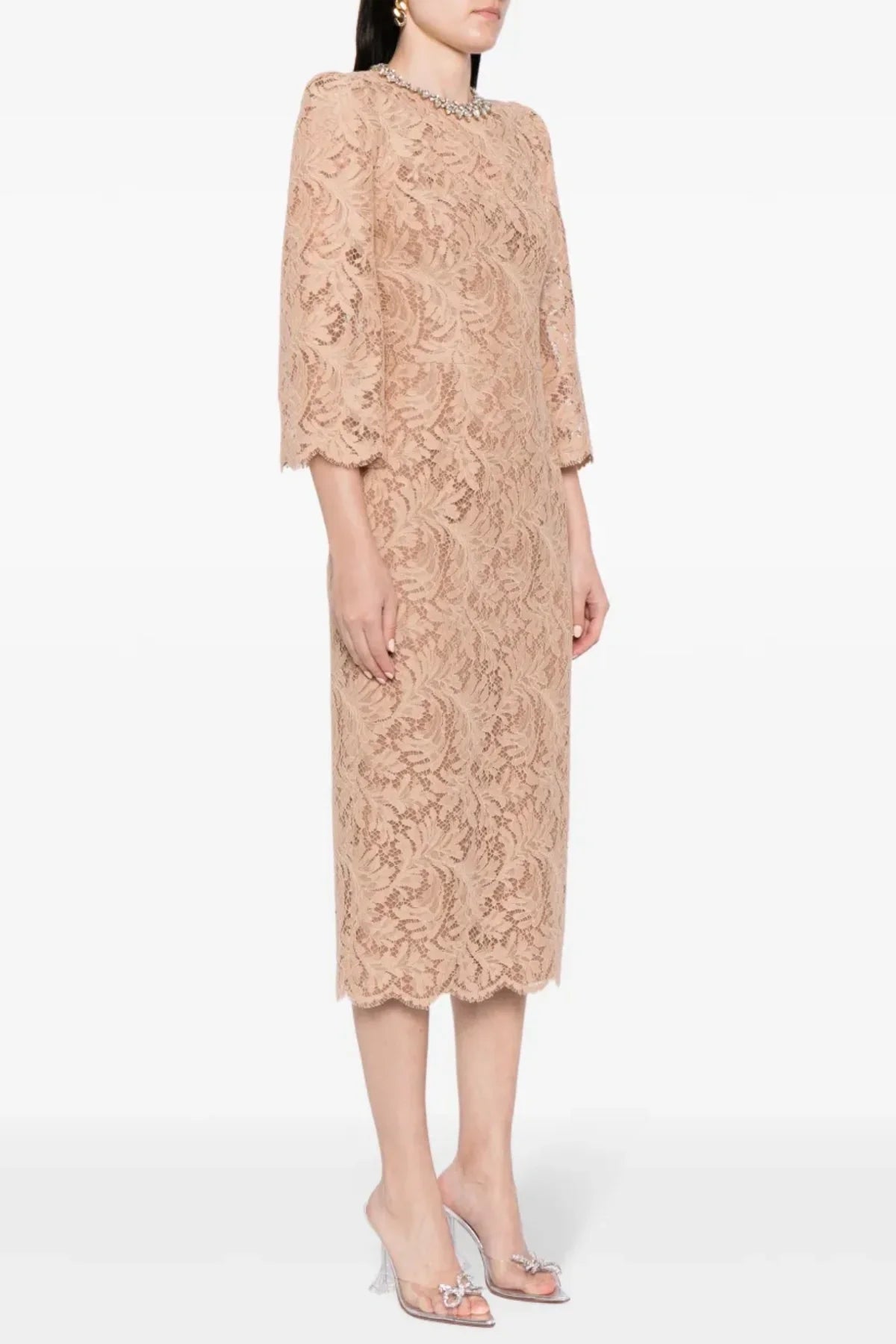 Acotas Lace Crystal-embellished Midi Dress - Nude