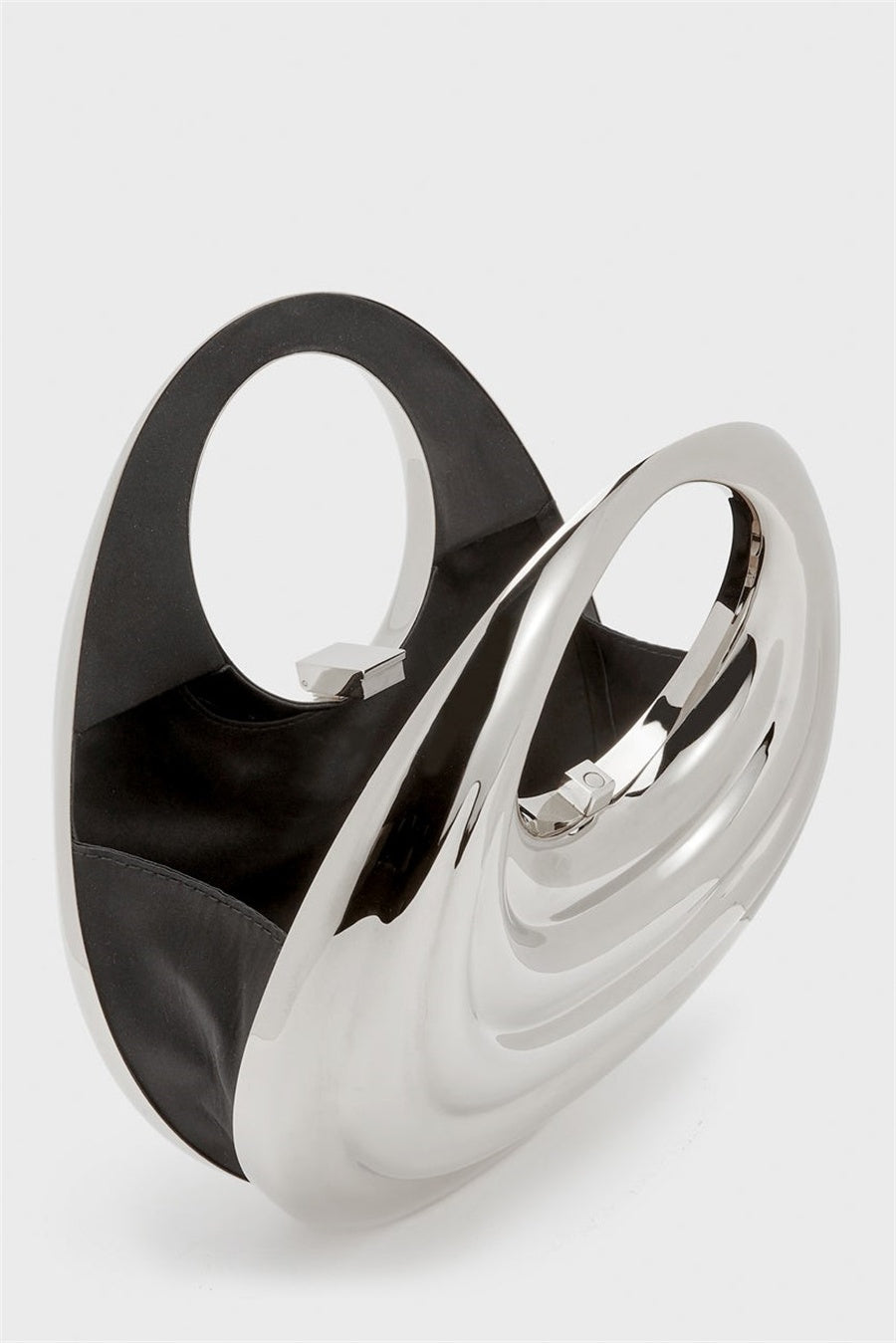 Indulge in luxury with the Annabel Metal Clutch in sleek silver. This exclusive Moon-shaped bag is crafted from high-quality metal, exuding elegance and sophistication. Perfect for any evening occasion, this clutch adds a touch of glamour to any outfit.  Whether you're a maximalist in need of a daily essential, or a minimalist looking to add a silver touch to your ensemble, it's the perfect choice!