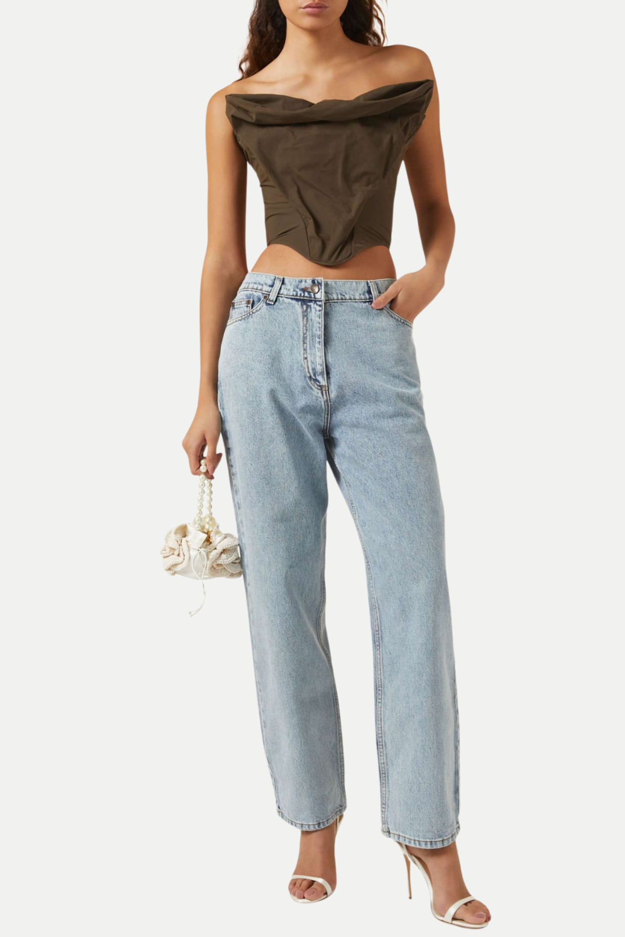Indulge in luxury with our Balius Draped Satin Corset in Green. Made from premium satin, this corset features elegant draping for a sophisticated look. The perfect addition to your wardrobe, it offers a flattering fit and adds a touch of glamour to any outfit. Elevate your style today.