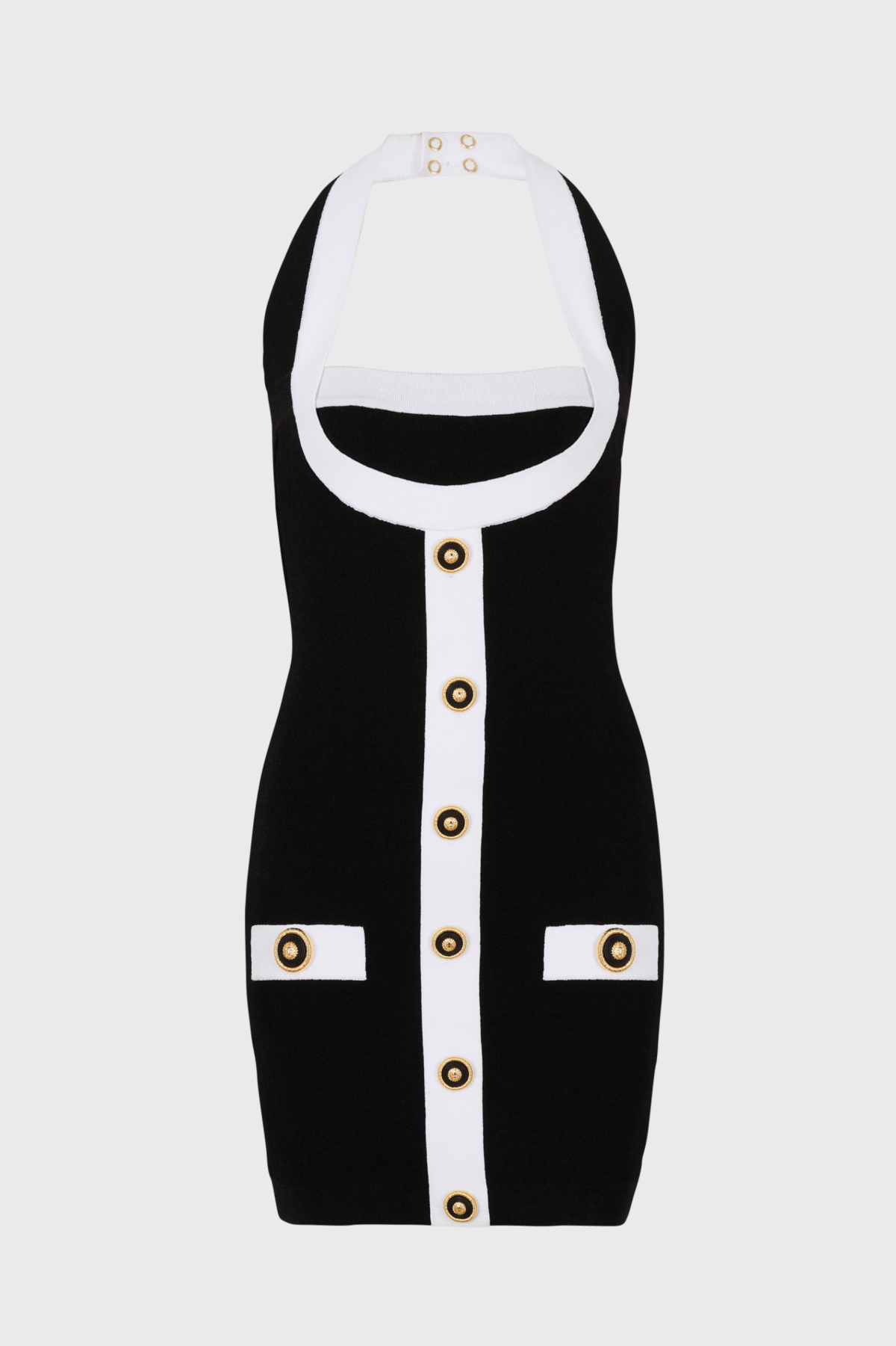 Indulge in luxury with our Brica Two-tone Halter Mini Bandage Dress. This sophisticated dress features a halter neckline and a body-hugging bandage design for a flattering fit. The two-tone color adds an extra touch of elegance to this exclusive piece. Elevate your wardrobe and make a statement at your next event with this stunning dress.