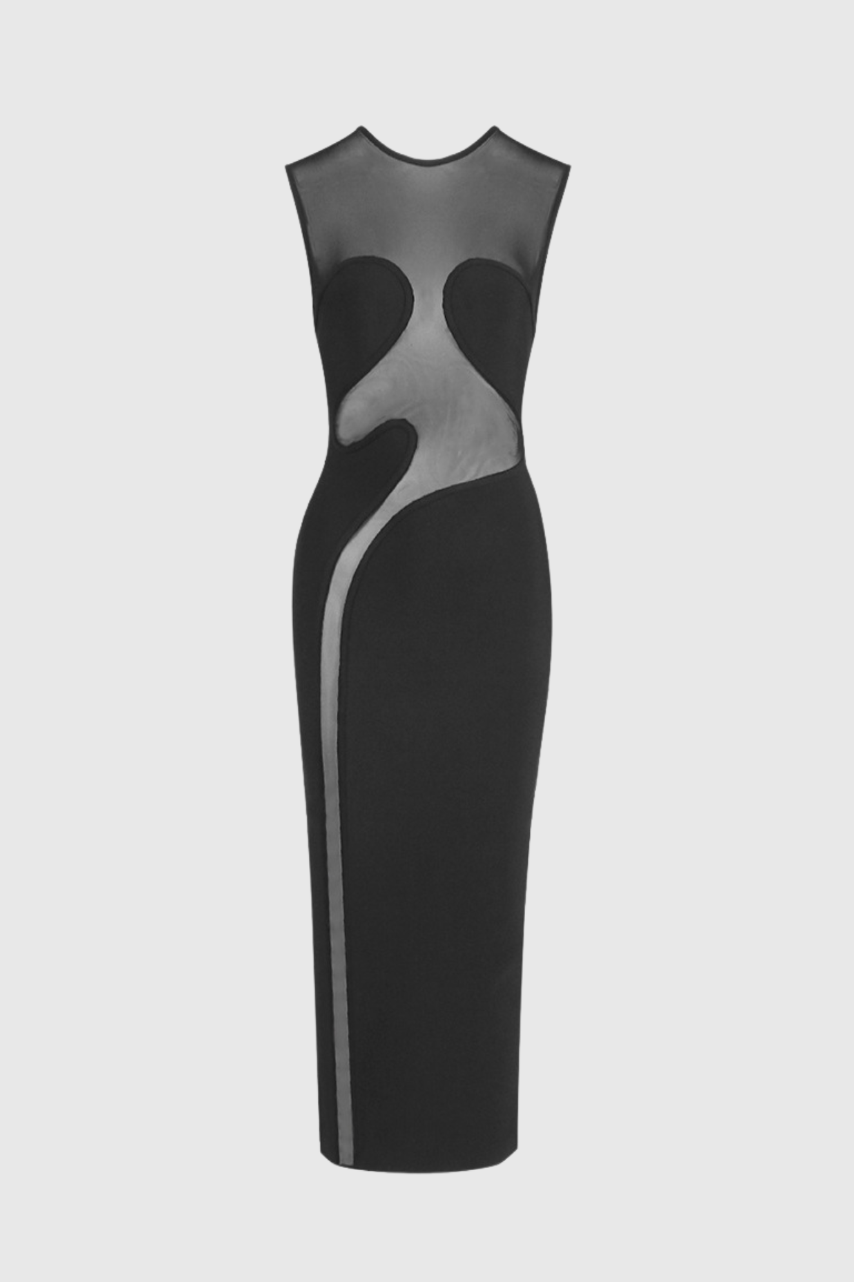 Carmina Mesh Paneled Maxi Bandage Dress - Black