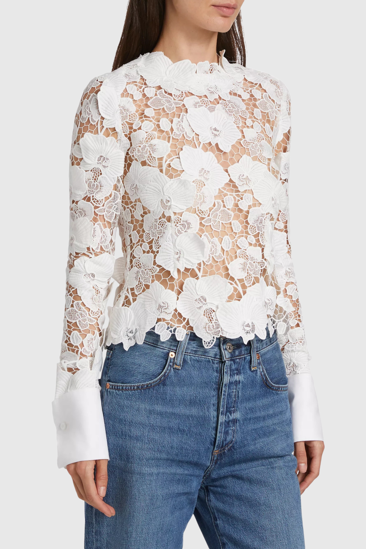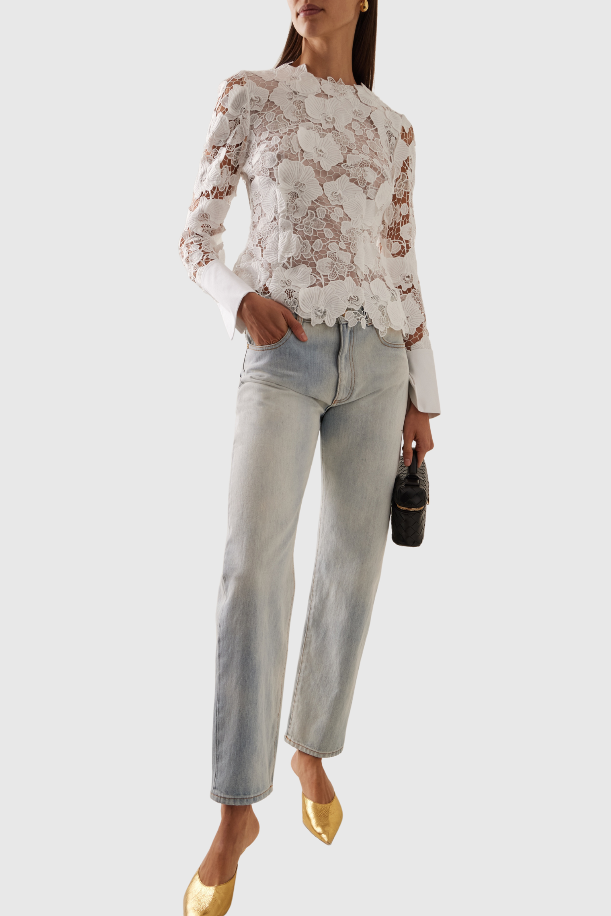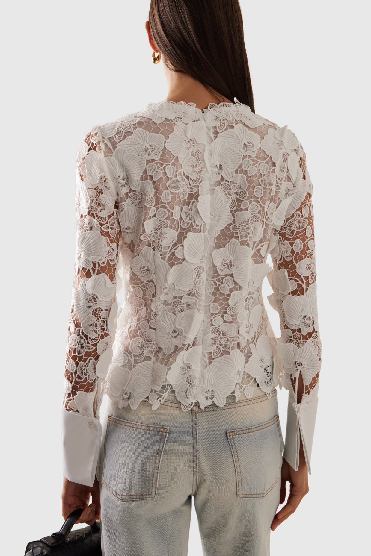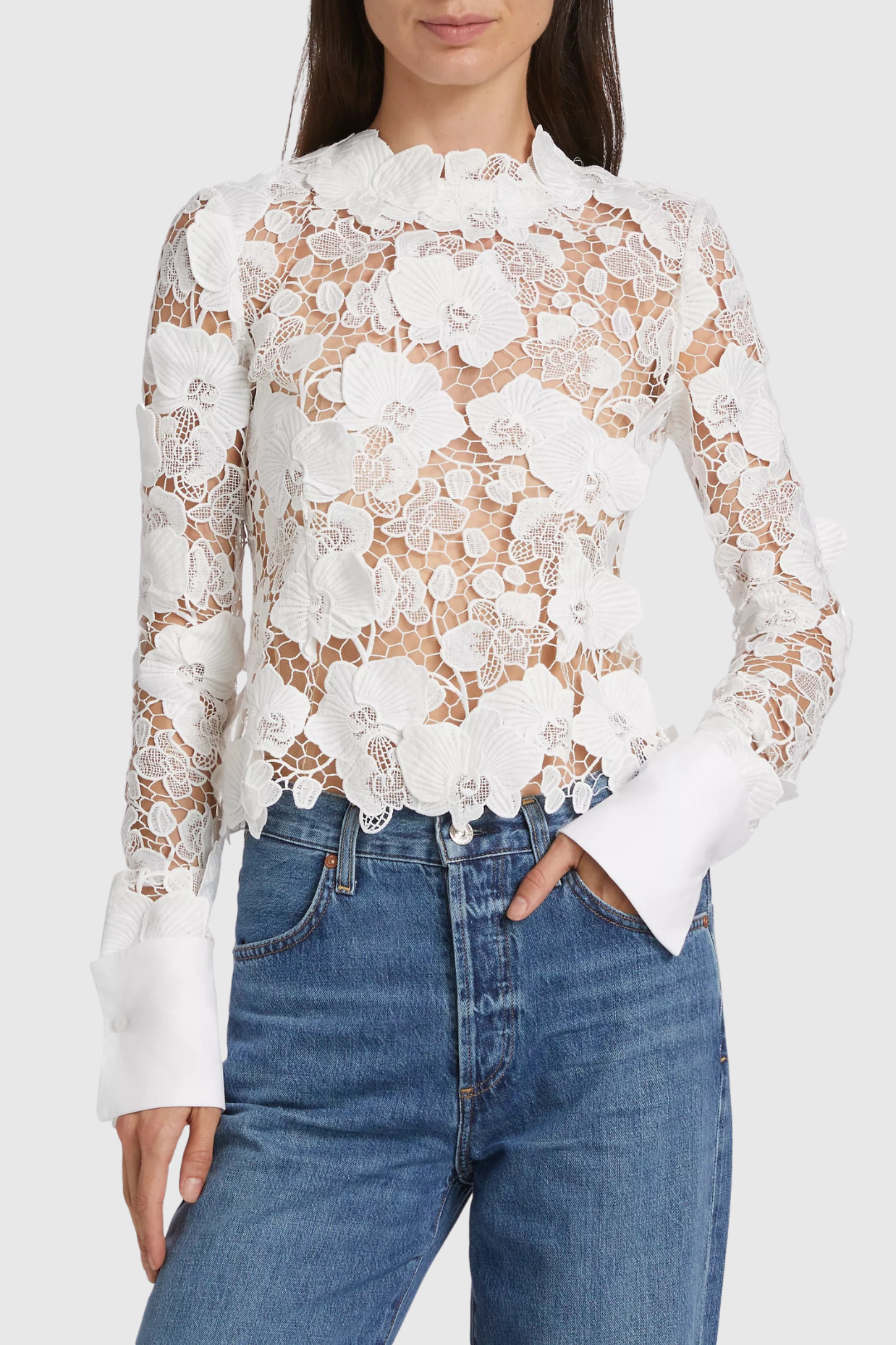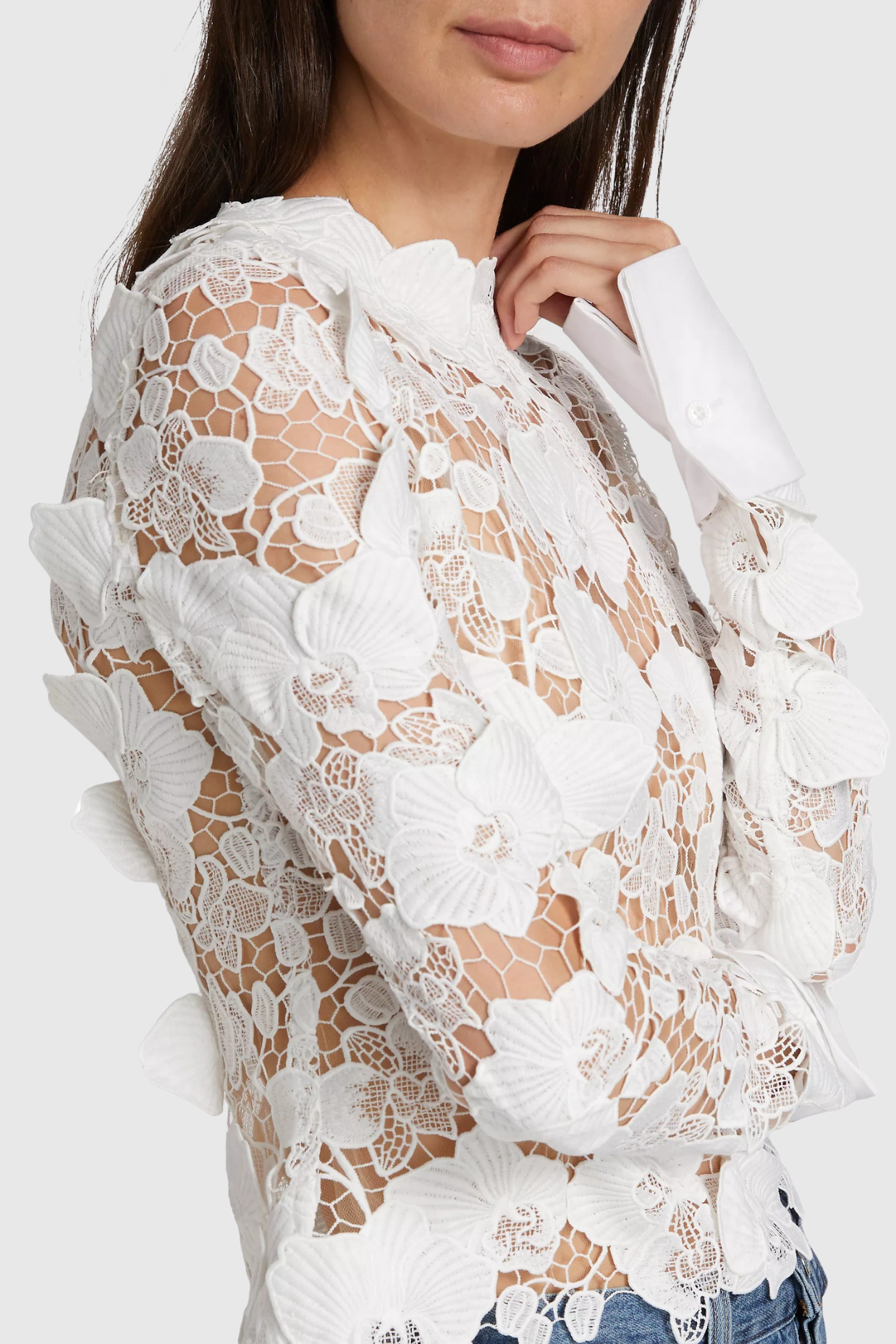 Indulge in the luxurious elegance of the Cavallo Guipure Lace Long Sleeve Blouse. Exquisitely crafted from delicate guipure lace, this blouse features long sleeves and a classic button-up design. Elevate any outfit with its intricate lace details, adding a touch of sophistication and grace to your wardrobe.