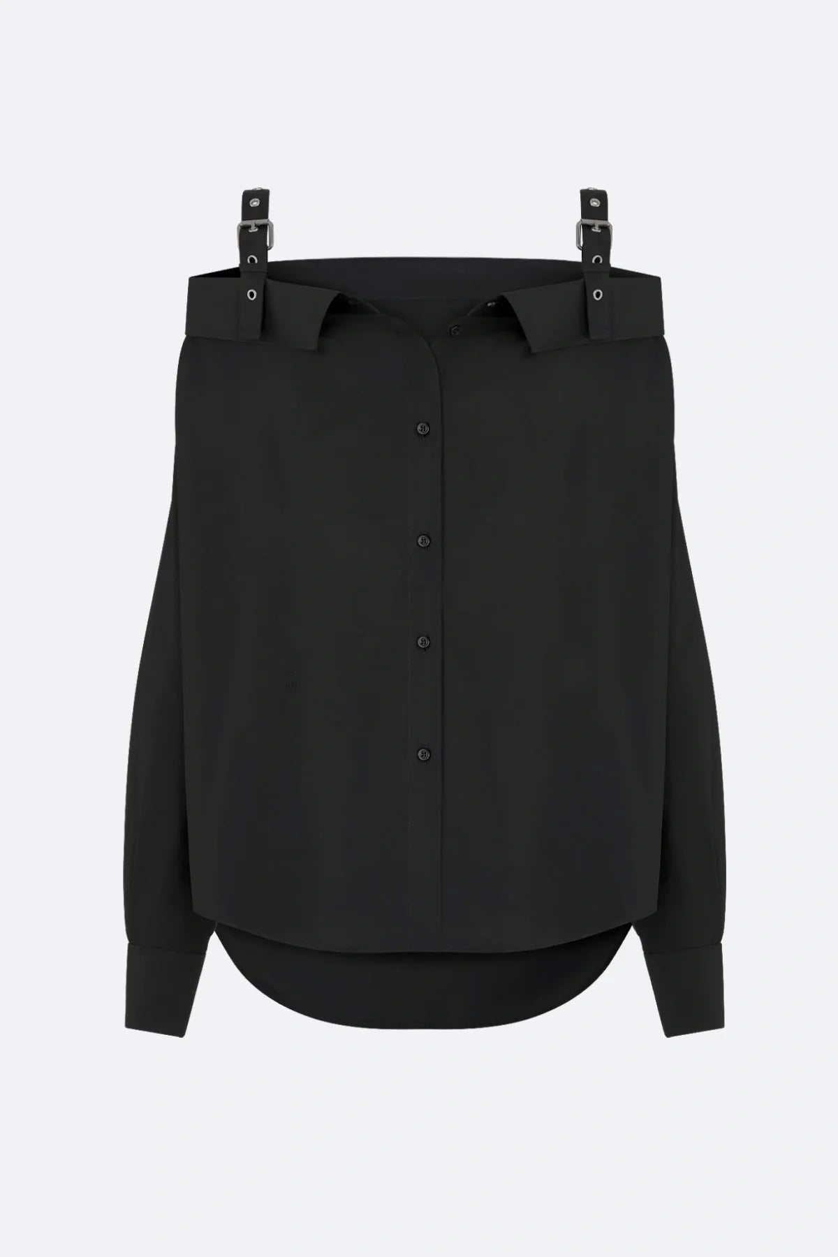 Introducing the Charlize Off Shoulder Buckle Shirt, a luxurious and sophisticated addition to your wardrobe. Crafted with intricate detailing and a unique off shoulder design, this shirt exudes exclusivity. The adjustable buckle adds a touch of elegance and versatility, making it a must-have for any fashion-forward individual. Elevate your style with the Charlize.