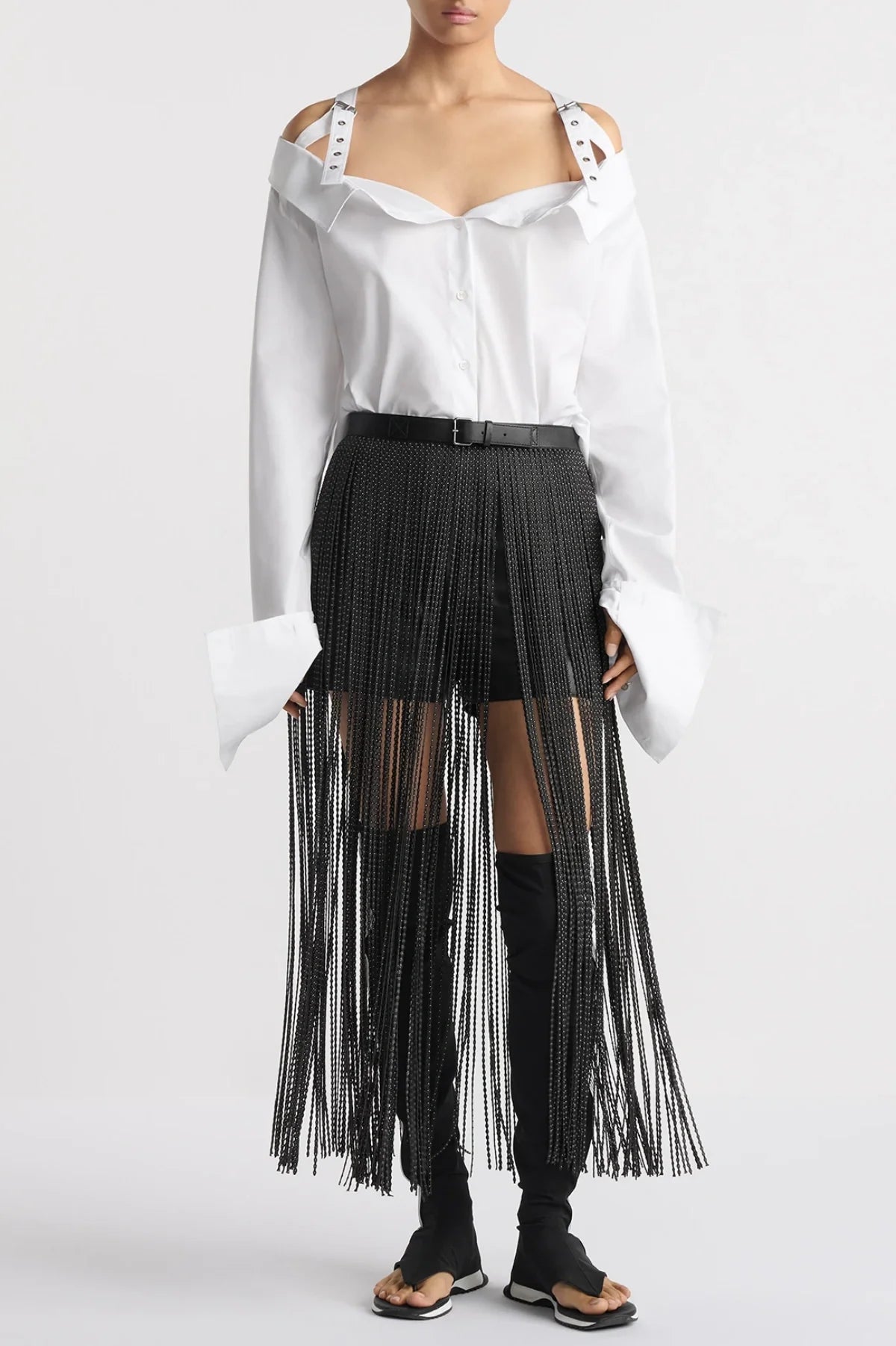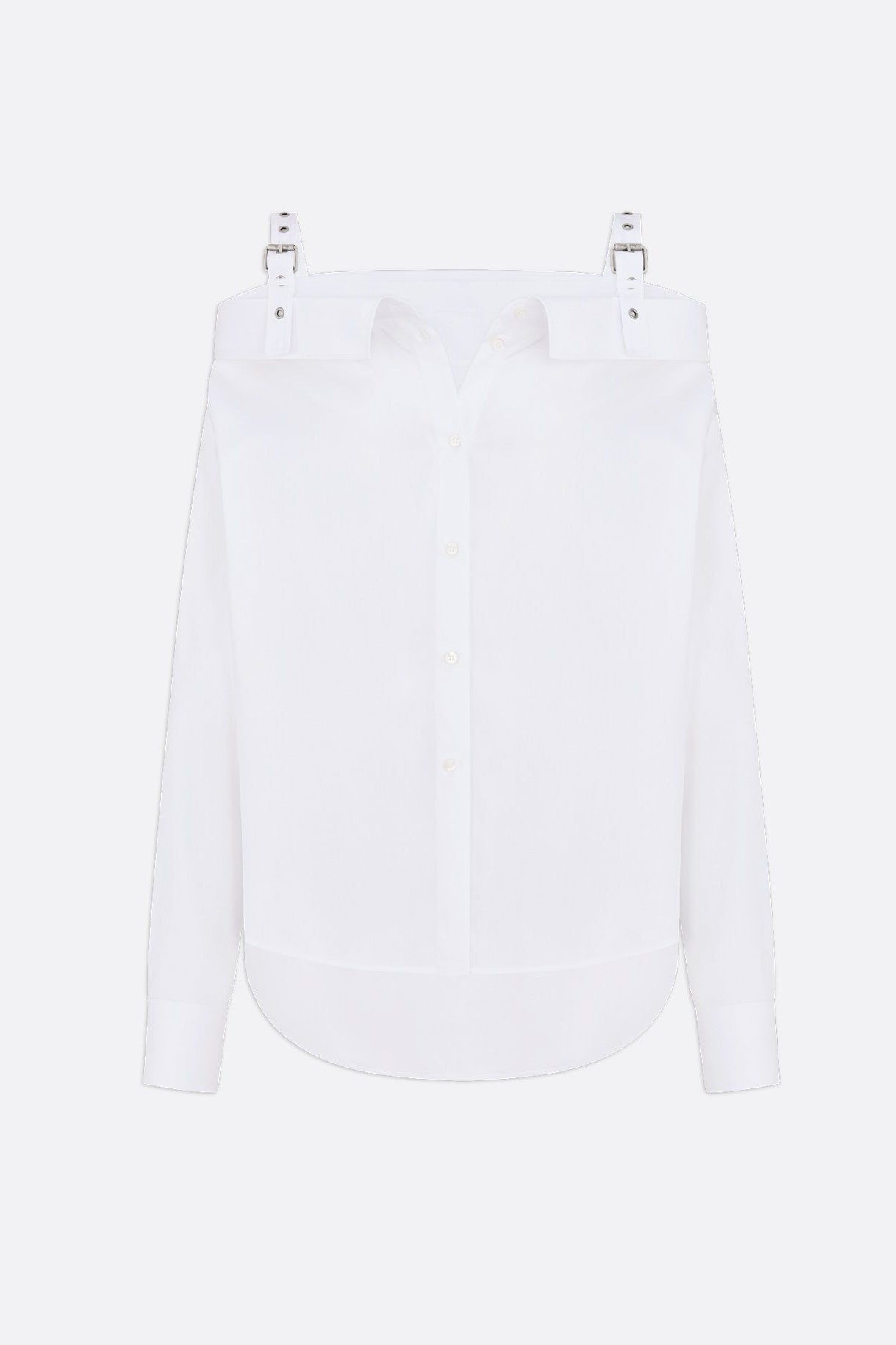Introducing the Charlize Off Shoulder Buckle Shirt, a luxurious and sophisticated addition to your wardrobe. Crafted with intricate detailing and a unique off shoulder design, this shirt exudes exclusivity. The adjustable buckle adds a touch of elegance and versatility, making it a must-have for any fashion-forward individual. Elevate your style with the Charlize.