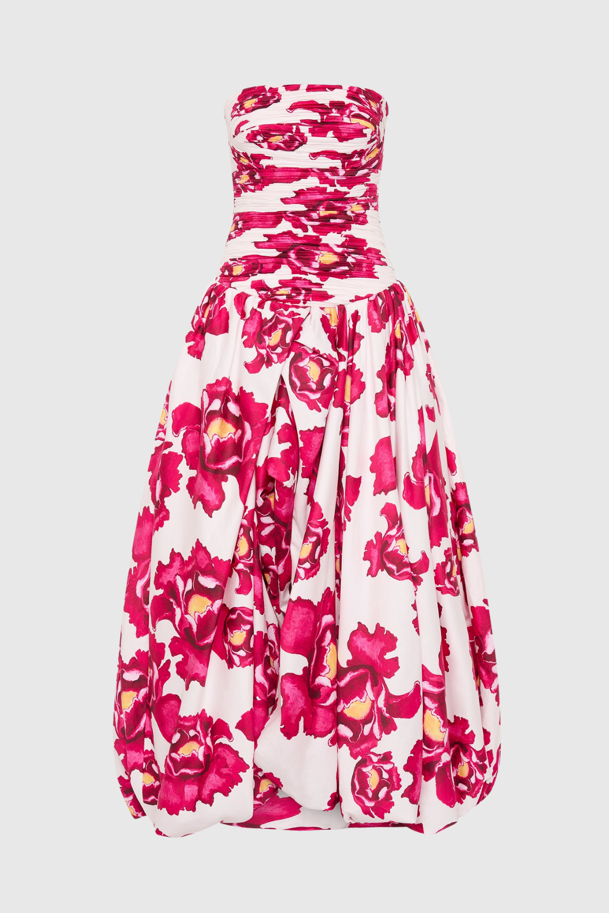 Coleka Floral Print Strapless Ruched Maxi Dress - Pink