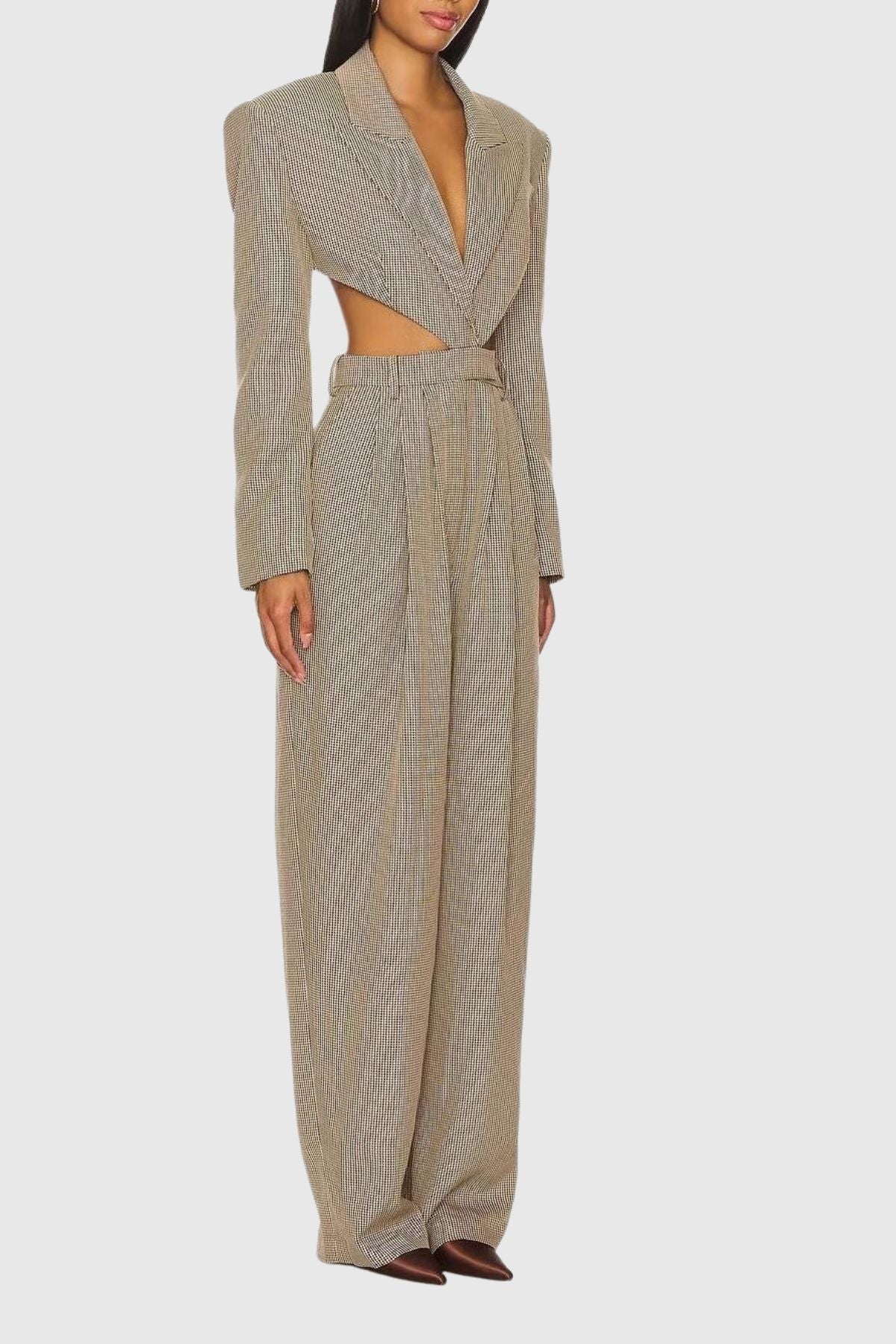 Cordia Houndstooth Belted Cutout Jumpsuit