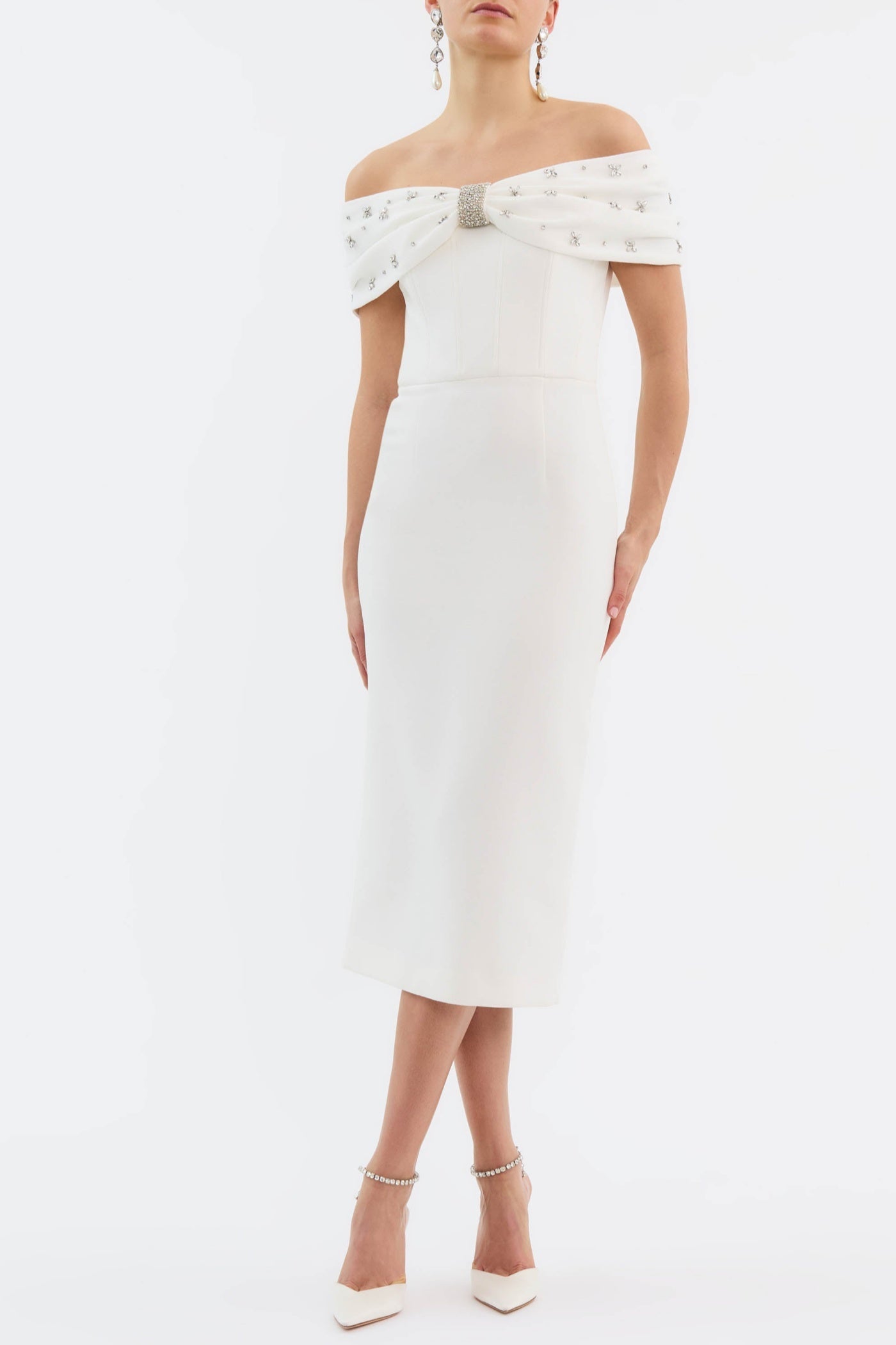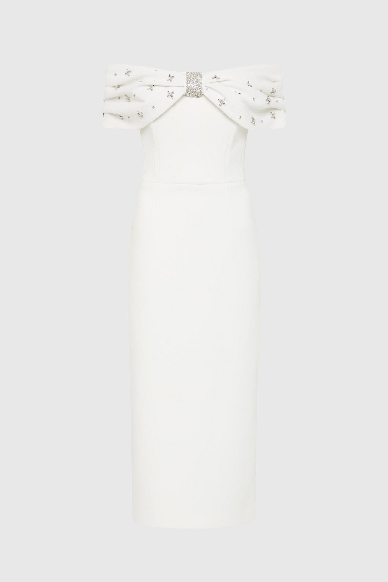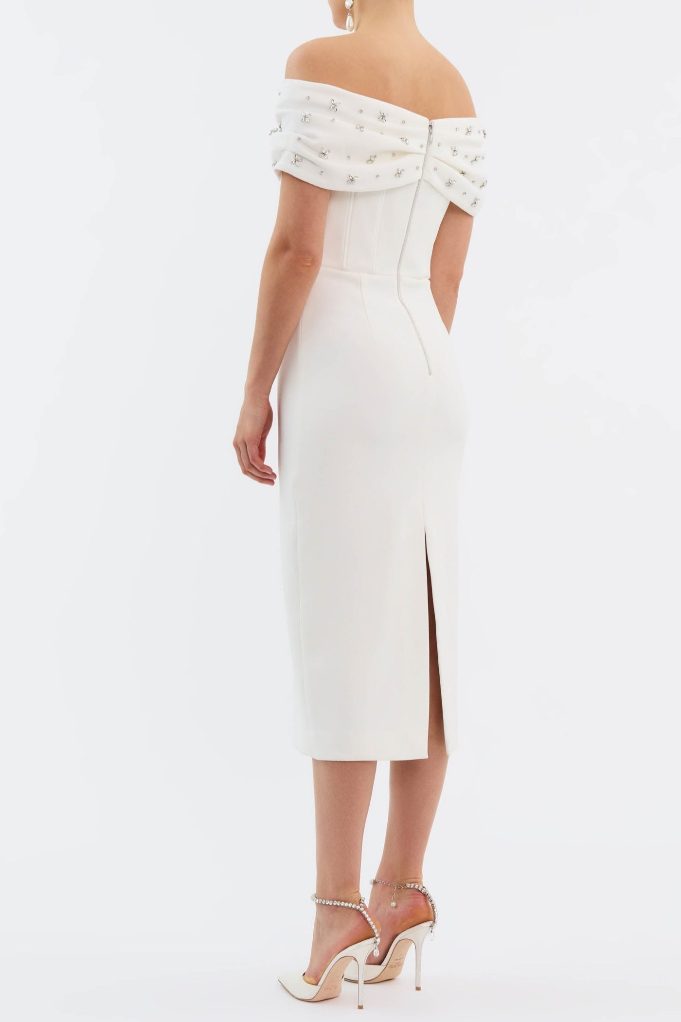 Dacre Off Shoulder Crystal Embellished Midi Dress