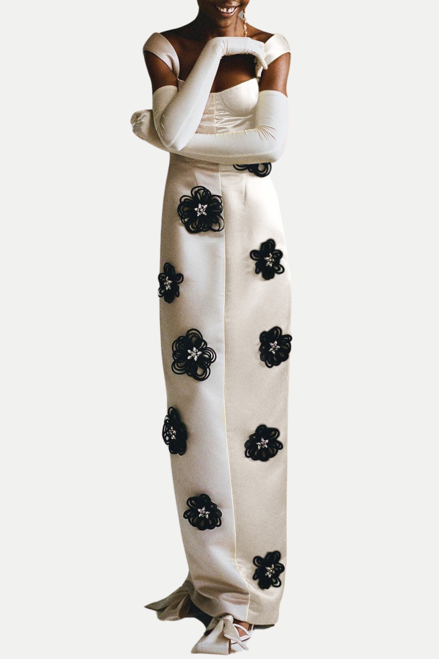 Darrah Floral Appliqué Maxi Bandage Dress - White