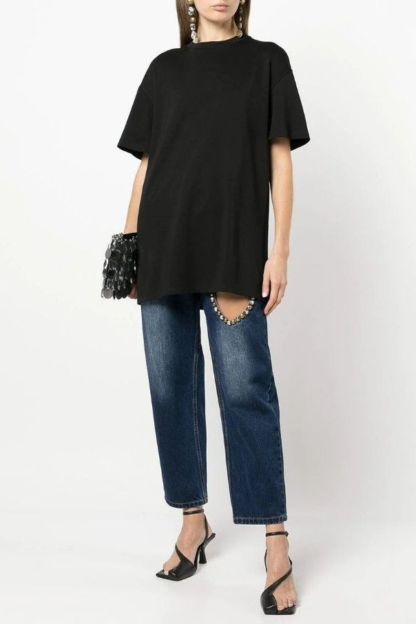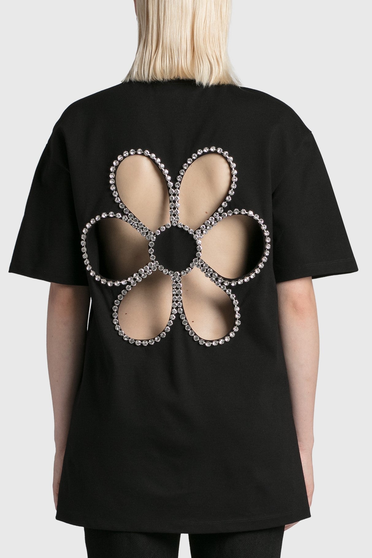 Debora Flower Hollow Rhinestone Embellished T-shirt - Black