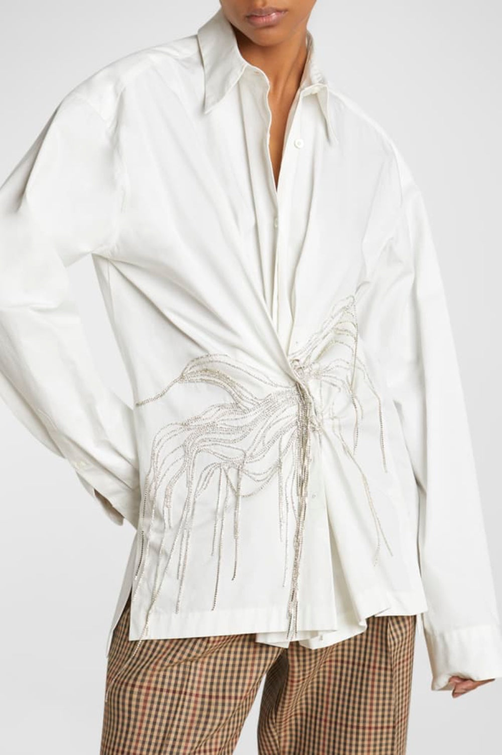 Get ready to shine in our Deborah Rhinestone Embellished Shirt! This stylish shirt features dazzling rhinestones that will make you stand out in any crowd. Perfect for a night out or special event, this shirt will add some sparkle to your wardrobe.